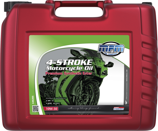 MPM 4-Stroke Motorcycle Oil 10W-50 Premium Synthetic Ester Technologie is geschikt voor lucht- en watergekoelde 4-takt motorfietsmotoren. Het hoogwaardige estermengsel geeft een uitstekende bescherming, vermindert het olieverbruik en verlengt de levensduur van de motor. Deze multigrade SAE 10W-50 motorolie is ontwikkeld voor standaard motorfietsmotoren.Geschikt voor smering van de transmissies met of zonder natte plaatkoppelingen.