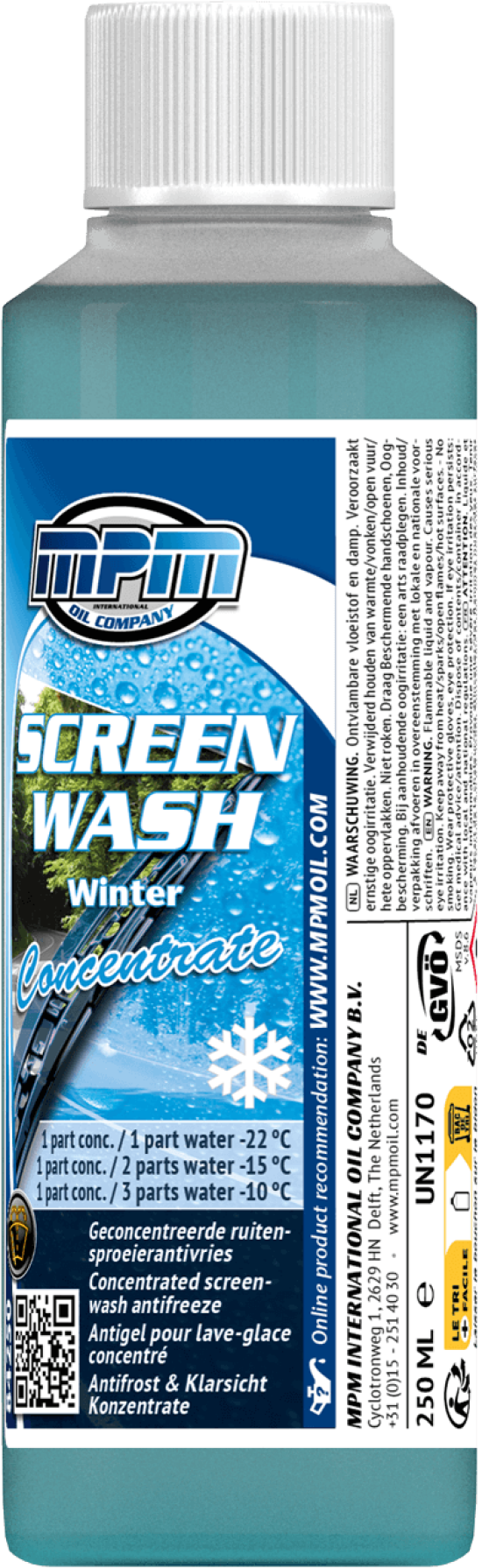 Deze milieuvriendelijke ruitensproeierantivries voorkomt het bevriezen van het ruitensproeisysteem tot -45 °C en is tevens een uitstekende reiniger van smerige autoruiten. MPM Screenwash Concentrate is veilig voor poly-carbonaat, ruiten, rubber en lakken en laat geen strepen achter op de ruit. Bovendien is het product niet corrosief, niet schadelijk of irriterend, waardoor het veilig toegepast kan worden.