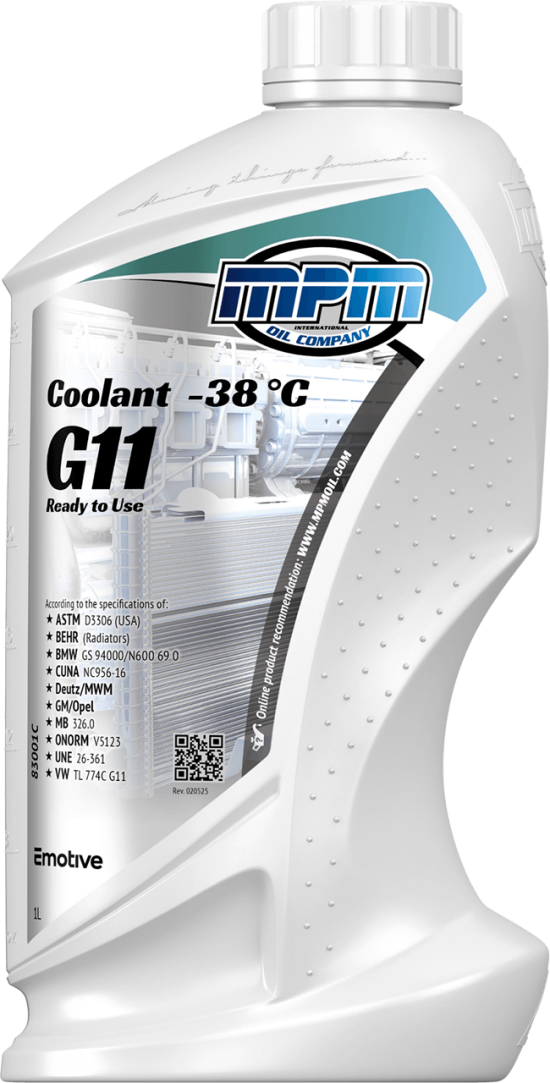 Deze silicaathoudende koelvloeistof -38°C VW TL 774C /G11 is een topkwaliteit koelvloeistof en is gedurende het gehele jaar te gebruiken in de koelsystemen van benzine- en dieselmotoren. Dankzij het speciale additieven pakket en de hoge kwaliteit mono-ethyleenglycol behoort deze MPM Coolant -38°C VW TL 774C /G-11 tot de hoogste kwaliteit in de markt. Deze koelvloeistof dient onverdund te worden gebruikt en heeft een vorstbeveiligng tot -38°C.