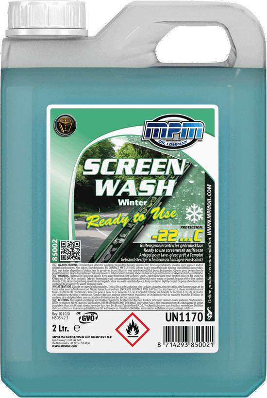 Deze milieuvriendelijke kant & klare ruitensproeierantivries -22°C voorkomt het bevriezen van het ruitensproeisysteem en is tevens een uitstekende reiniger van smerige autoruiten. MPM Screenwash Ready to Use -22°C is veilig voor poly-carbonaat, ruiten, rubber en lakken en laat geen strepen achter op de ruit. Bovendien is het product niet corrosief, niet schadelijk of irriterend, waardoor het veilig toegepast kan worden.