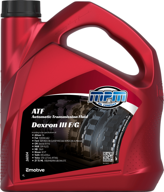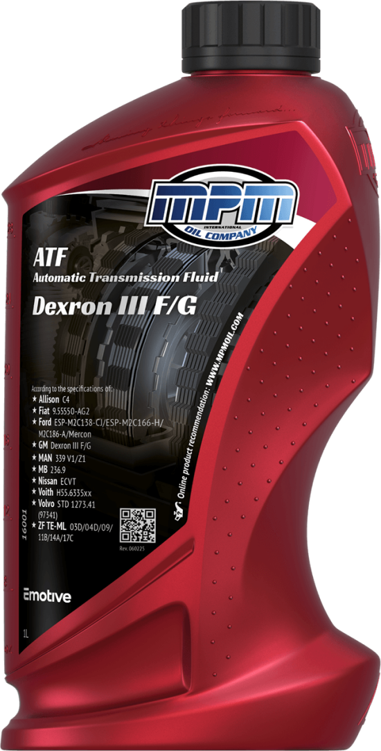 Deze premium synthetische ATF Dexron IIIF/G automatische transmissieolie is speciaal ontwikkeld voor automatische transmissies, stuurbekrachtigingen, koppelomvormers en andere toepassingen waarvoor constructeurs een ATF Dexron IIIF/G-olie voorschrijven.