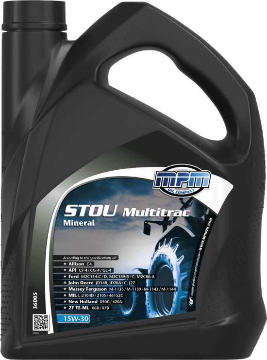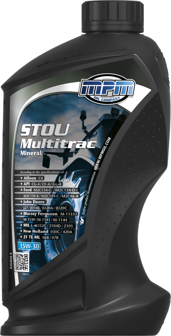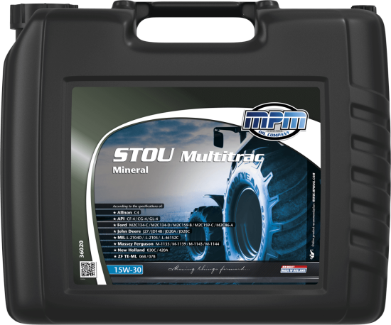 Deze minerale STOU (Super Tractor Oil Universal) multitrac SAE 15W-30 multifunctionele landbouwolie is speciaal ontwikkeld voor in dieselmotoren, transmissies, power take-off, natte remmen, hydraulische systemen, stuurbekrachtiging en eindaandrijving van o.a. tractoren, combines weg- en waterbouwmachines.